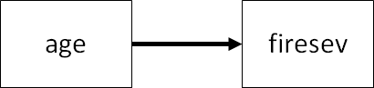 Ta mô tả quan hệ giữa hai biến này như sau. Chiều mũi tên, cho thấy nguyên nhân age tác động đến kết quả firesev [biến nội sinh, endogenous (response) variable].